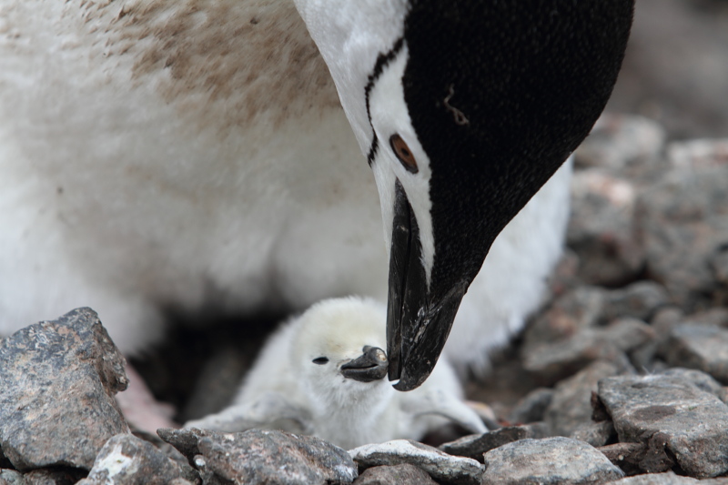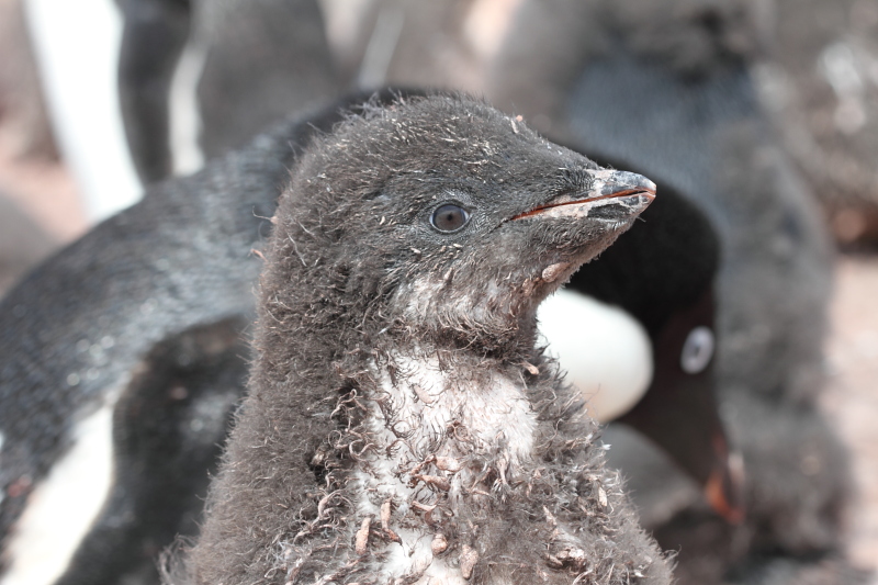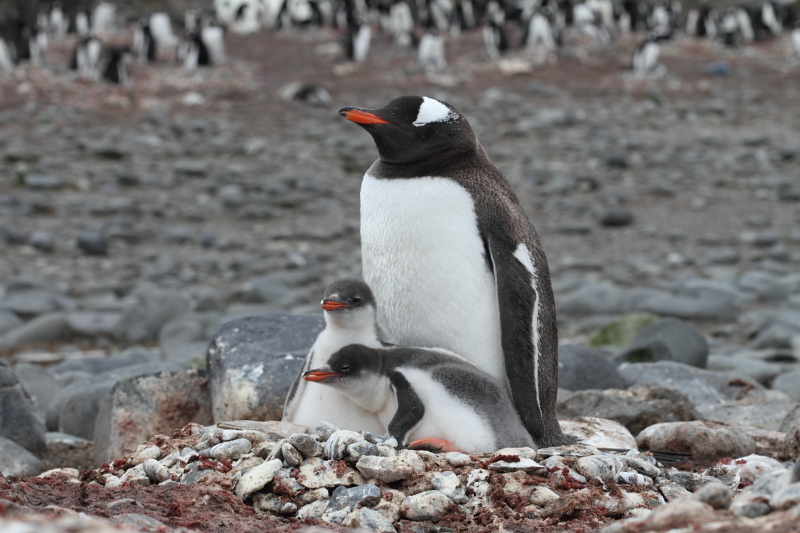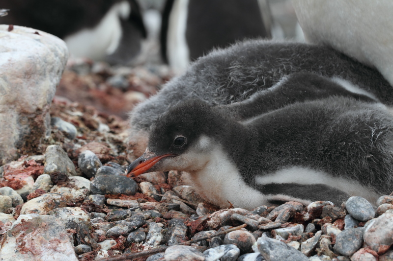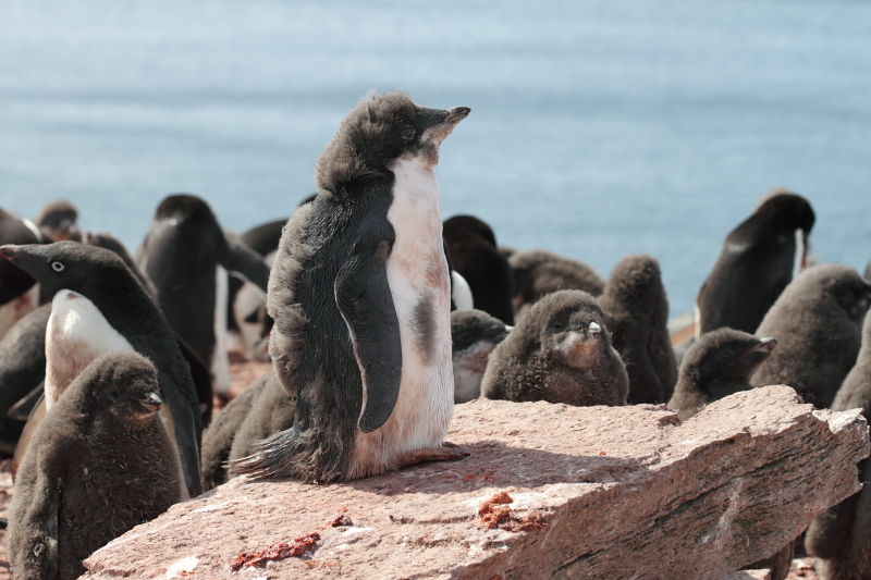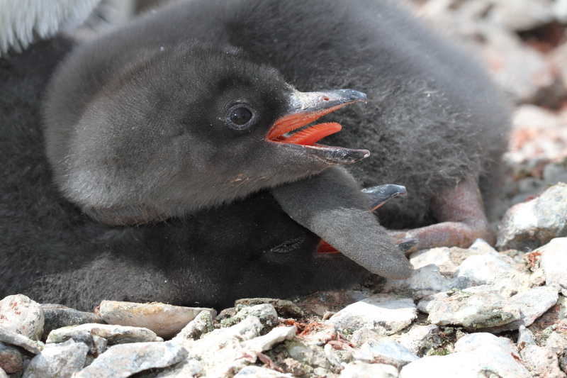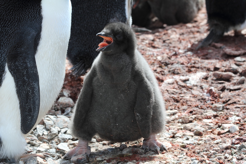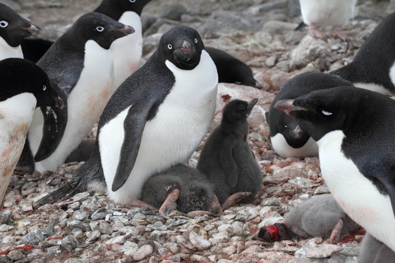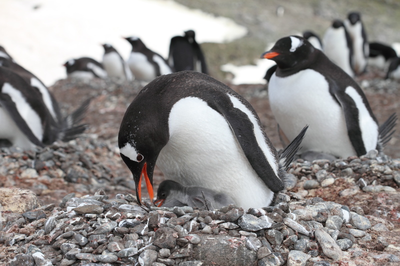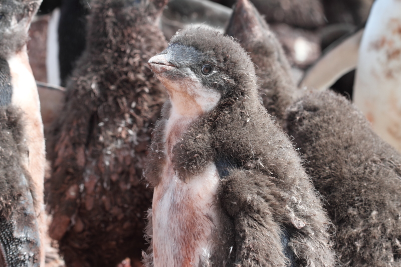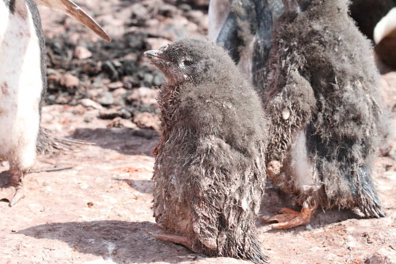 the station and waited until some of the penguins decided to stand up on their nests. Usually they're just laying on their bellies and the chicks