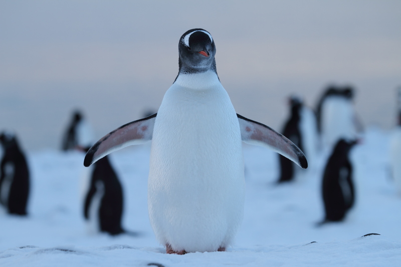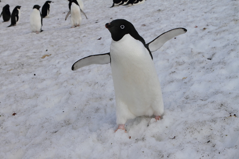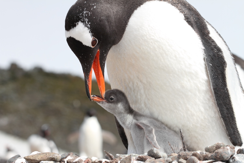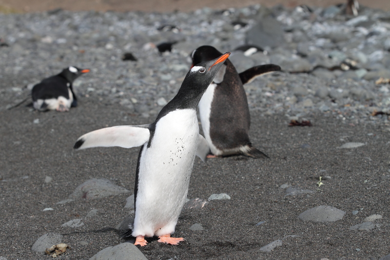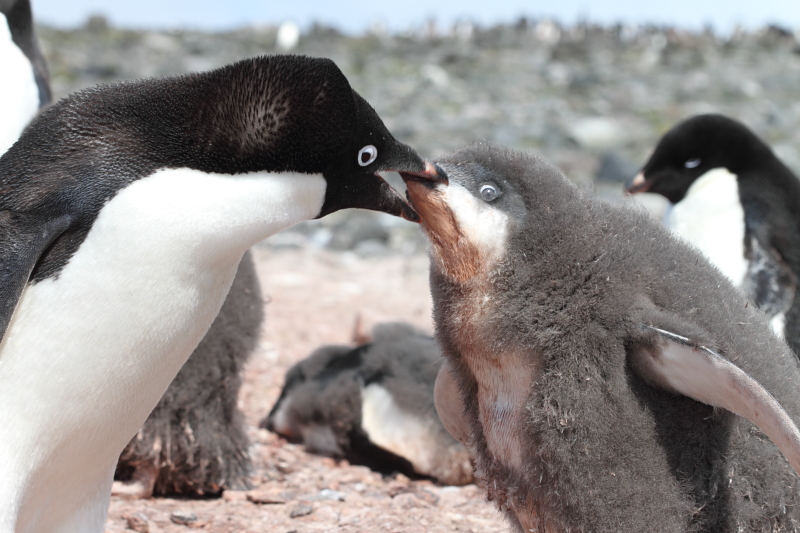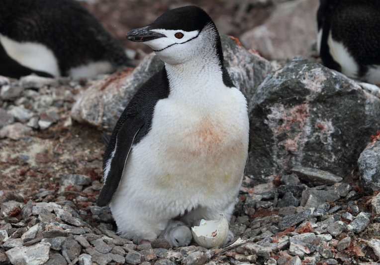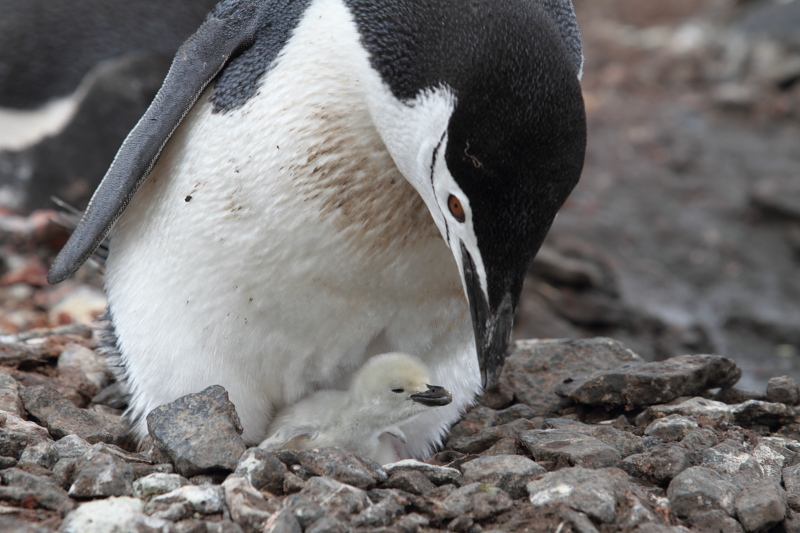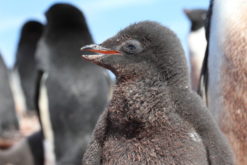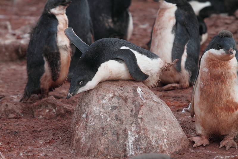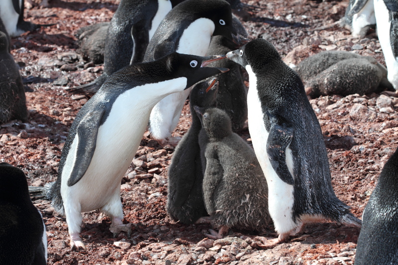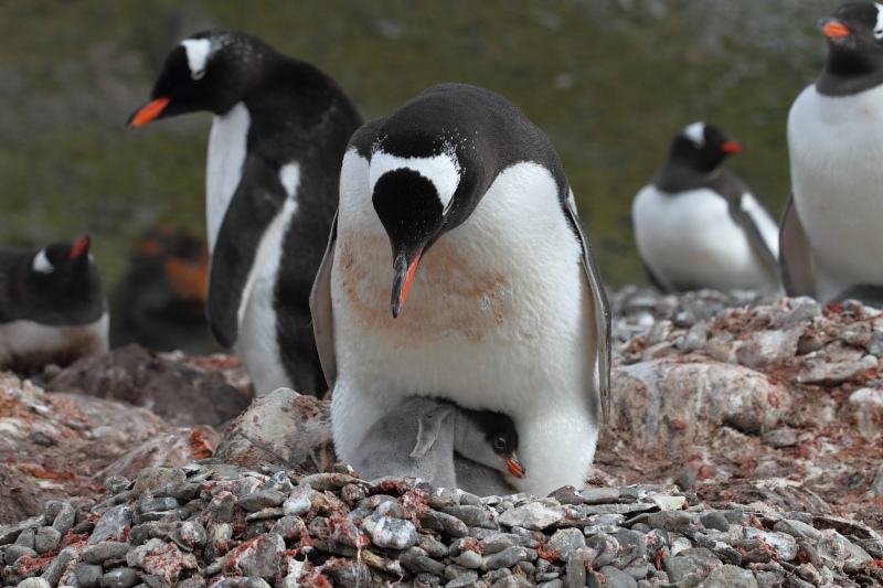 the station and waited until some of the penguins decided to stand up on their nests. Usually they're just laying on their bellies and the chicks