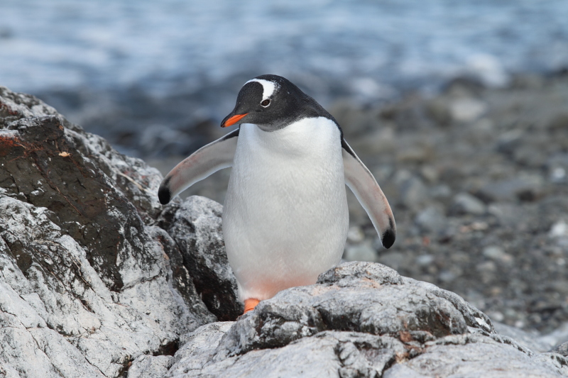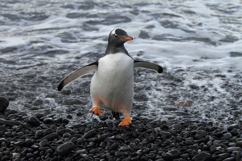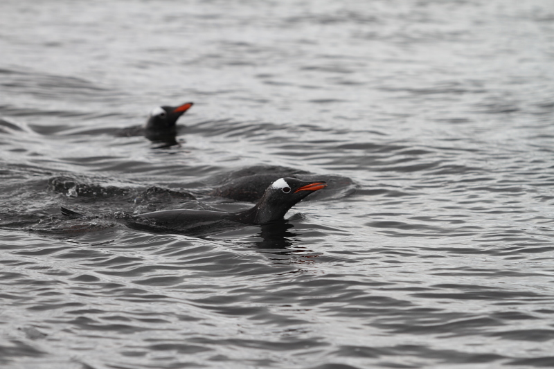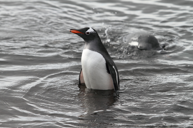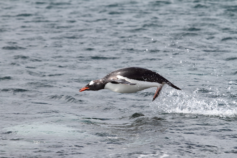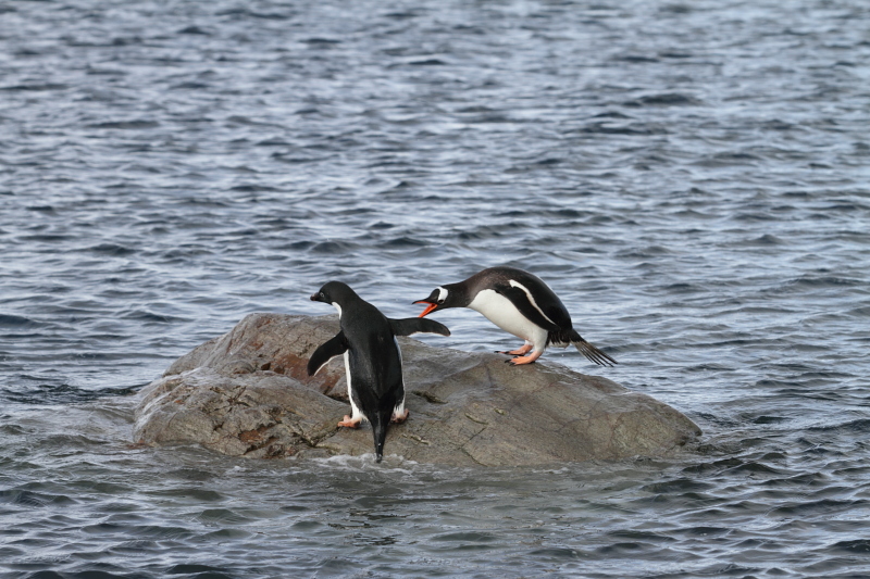 | 2012/10/05 - Over the past few days we've seen waves of adeli penguins coming back to the rookeries. On a nice calm day like the one pictured, you'd be able to hear them calling from far away in the Bay. The adelis already ashore would reply to their calls and within minutes, you could see a group of 5-10 penguins jumping out of the water. | ||||||||||||||||||||||||