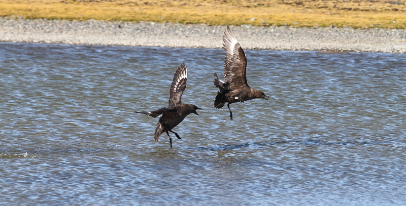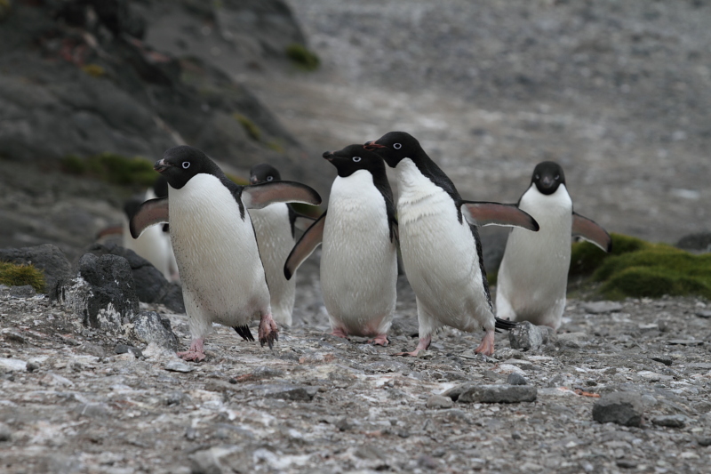 | 2012/01/25 - Below you'll see some of the last photos I made before the adelis went to water - now the rookery is practically empty. There are still gentoos and chinstraps on the beach, but an adeli is a rare sight. They will probably show up here again in September, at the end of the winter season. The oldest skua chiks are getting ready to fly, they look almost like their parents now. The fur seals just started showing up - soon there'll be hundreds if not thousands of them here. | ||||||||||||||||||||||||