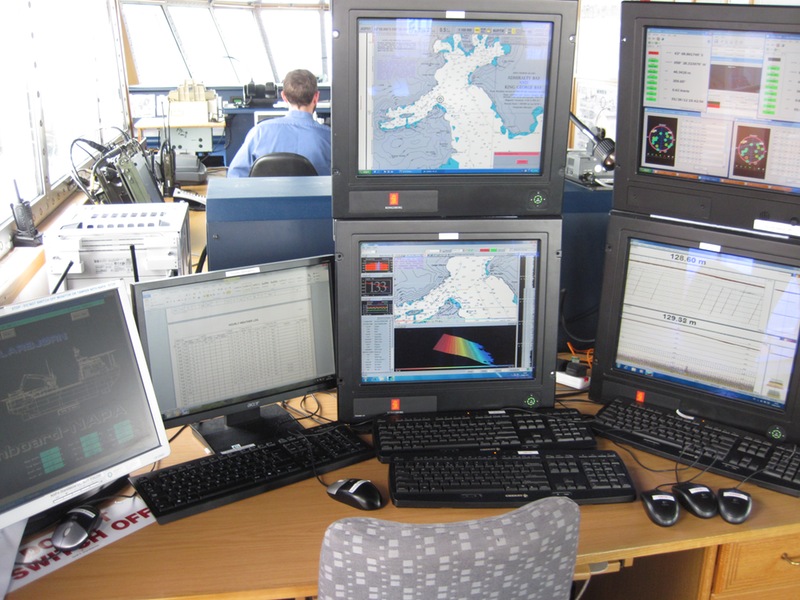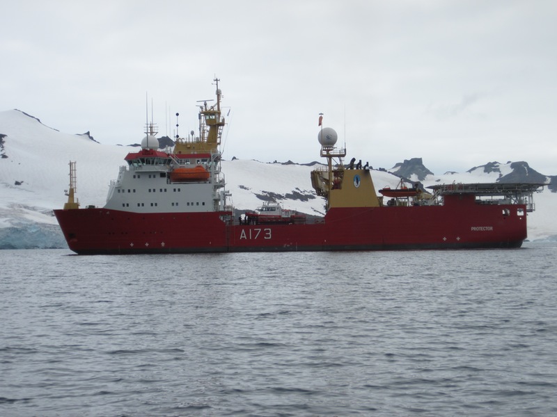 | 2012/01/29 - It's cool to be guests rather than hosts once in a while. On a nice Sunday morning we got a call from HMS Protector that just entered Amirality Bay. They invited us for lunch. After a quick tour through the ice breaker operated by the Royal Navy, we ate lunch with the captain and some of the crew and then had a chance to chat with the officers for a while. | ||||||||||||||||||||||||