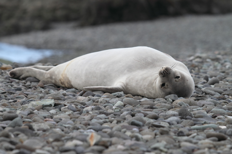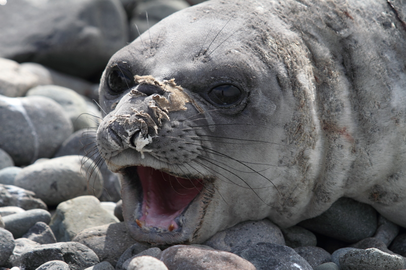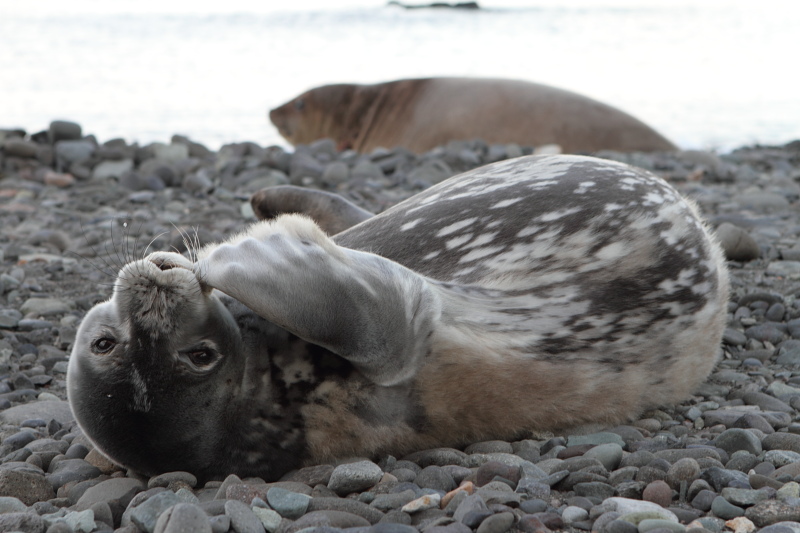 | 2012/10/14 - Went for a few short walks around the area to take a few photos. There's plenty of elephant seals coming to our area now. The weddel seal pup is a lot bigger than the last time I went there. The American Copacabana crew arrived today on their icebreaker and supplied us with some fresh vegetables, fruits, milk and eggs - what a feast this is! We didn't have anything fresh since months now, the apples only lasted until April or so. So a loaf of freshly baked bread, butter, ham, lettuce, tomatoes and onions tasted like heaven! | ||||||||||||||||||||||||