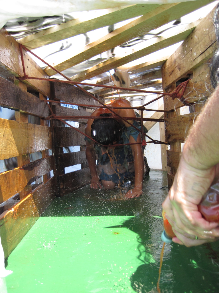 2011/10/29 - We're finally in Argentina! It took us far too long to cross the Atlantic. Out of those 19 days, most were really bad - stormy. Right after we've crossed the Equator the weather turned really bad and we had almost no rest. Even right now (I'm writing this when we're still a few hours away from the port) the ship is still moving in all directions. At least the sea is calming down now, it's sunny, although still a bit windy. I've made some movies from the bridge during the storm and will try to upload them to youtube later. Those stormy days were really wasted - the best one could do was to lie down and read. I'm generally disappointed - I kind of hoped we'd see more birds and sea mammals - tough luck. We've seen whales twice after leaving Las Palmas, some stray fur seals and dolphins once or twice but it was impossible to take any photos. Las Palmas itself didn't change much from the last time I was there. It's a typical tourist city with lots of small shops selling random stuff only tourists would buy (really random electronics for instance), small restaurants and a pretty nice beach (with wireless, woohoo!). We had enough time to go off the main streets too to see the life tourists aren't supposed to see and had a coffee in a bar targeted at locals. That part looked more like a real city - it was a lot dirtier too. In the end we stayed overnight in the port which also gave me a chance to do some jogging, one of the things I started to miss on the ship. We also had a chance to do some free internet browsing on the ship - there are ferries leaving from this port and a nearby one had free wireless which we managed to use for a while until it left. It had to be a funny sight - 5 guys with laptops aiming at the huge ship. Some people from the ferry even made photos The Equator crossing was pretty fun, also for the people who crossed the first time. There were the usual tortures and tests like I had to go through 6 years ago - drinking some horrible mixtures based on tabasco and ketchup, the tunnel (photo below) and lots of general abuse from the devils. It was quite fun seeing those guys (and girls) soaked in ketchup and strawberry sauce struggling through the tunnel. The new guys got their diplomas, of course. After the initiation we had a barbecue and a lengthy party. I guess I could say this was the only interesting day during the whole Atlantic crossing :( |