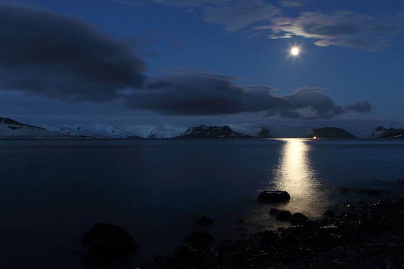 to Jedynka Point below Point Thomas to get a short look into Ezcurra. Since the sky was mostly clear during the night, I took this opportunity to take a few night shots around Arctowski. |