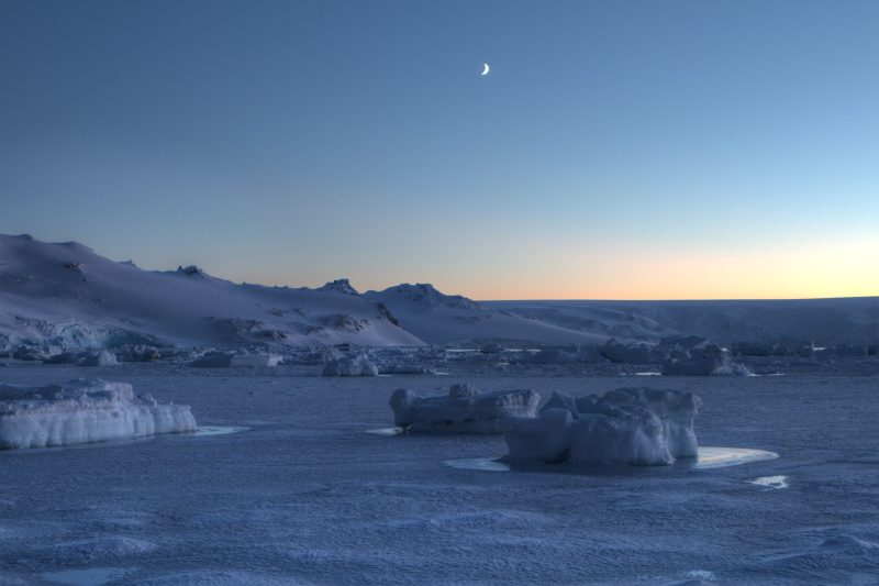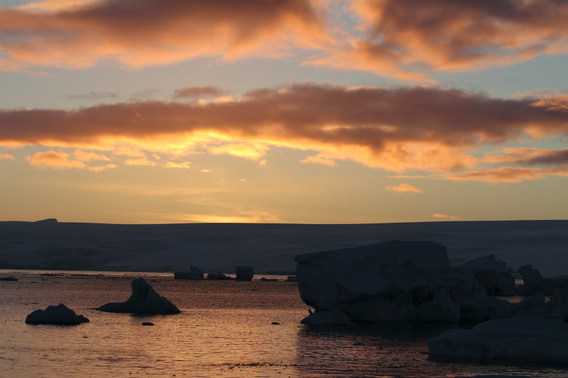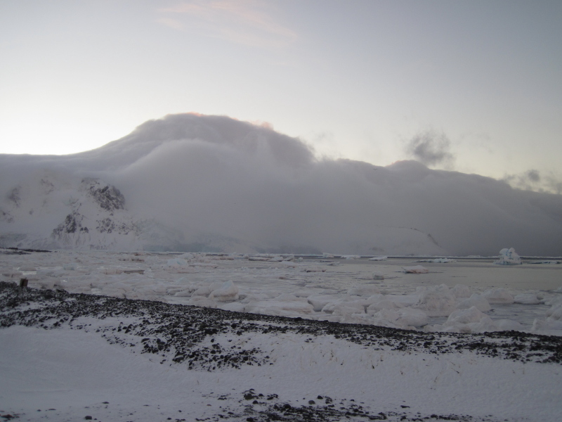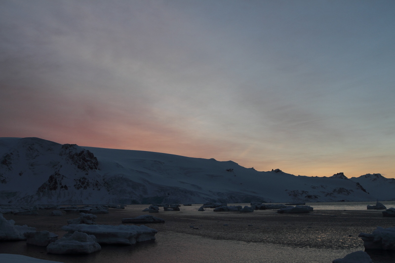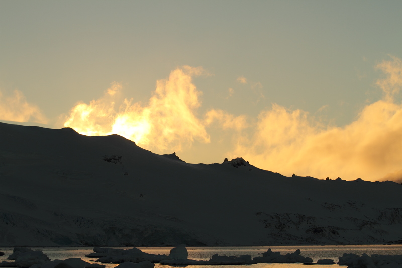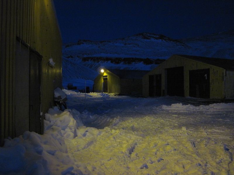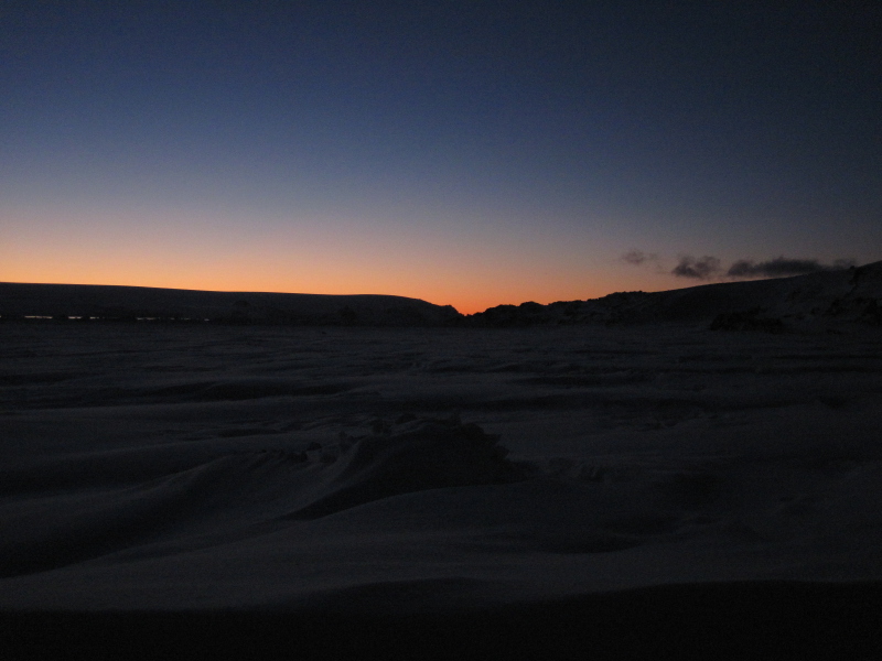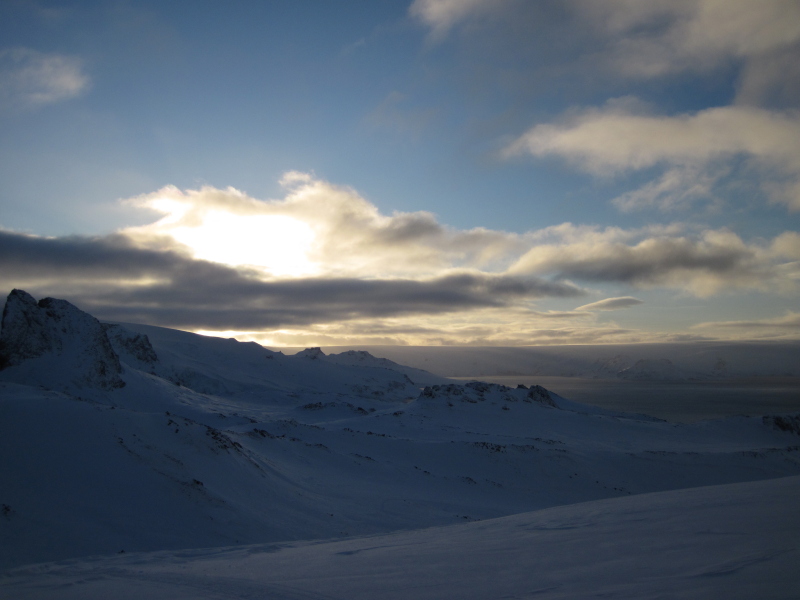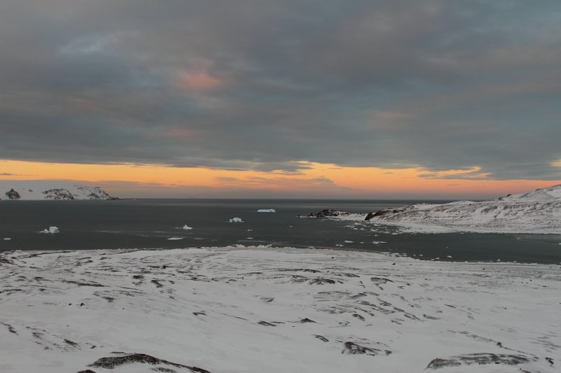 the West and once that's gone, there's light coming from the East. So, we do get nights at Arctowski now. As a matter of fact, it gets pretty dark by 9pm. |