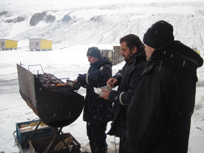 arrived: -5C. Right now the snow is slowly melting, there's a lot of mud everywhere again. We went to Ferraz last Sunday for a barbecue. It took us almost 3 hours to put the zodiac on water - there was so much snow that our tractor got stuck in it and we had to dig it out and then use the bulldozer to push the half-melted snow away. Add to that a big tidal wave at the Copacabana beach and we got back really wet and very tired. |
