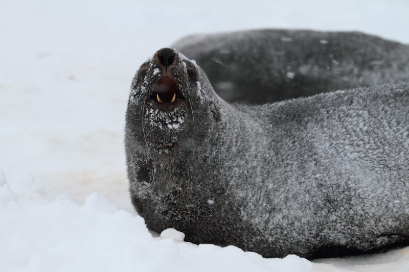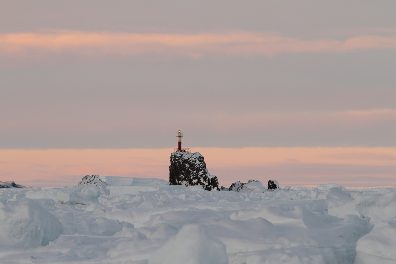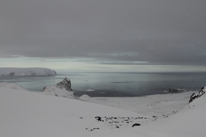 | 2012/09/6 - The spring didn't last long, but at least it left us with a few more opportunities to make photos. The gentoos started showing up near the base now, but since both snow and packed ice are back, they may as well stop coming - haven't seen any today at least. We're looking forward to the adeli penguins as well. Meanwhile, a lone leopard seal appeared on the ice near the lighthouse. That's a sign there's food nearby (read: penguins). | ||||||||||||||||||||||||