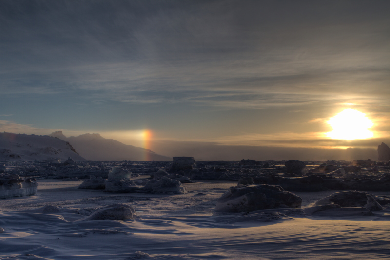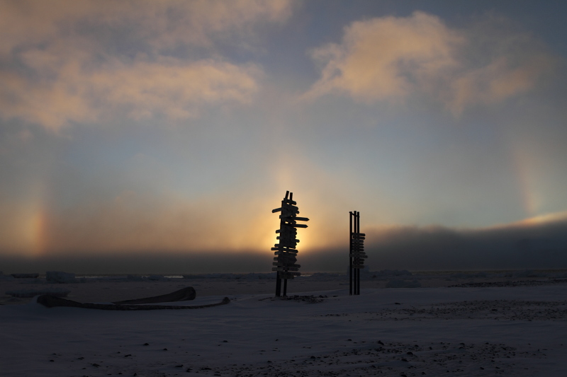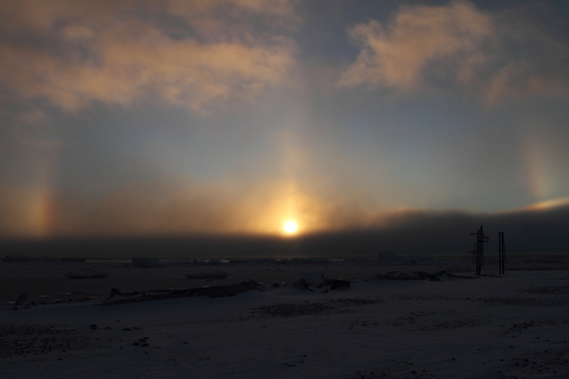 a complete halo, but hopefully we'll see some more in the upcoming months. Meanwhile the temperature outside has reached its record low with -18C and -40C with wind chill factor included. Today was the first calm day after several days of snow blizzards. |