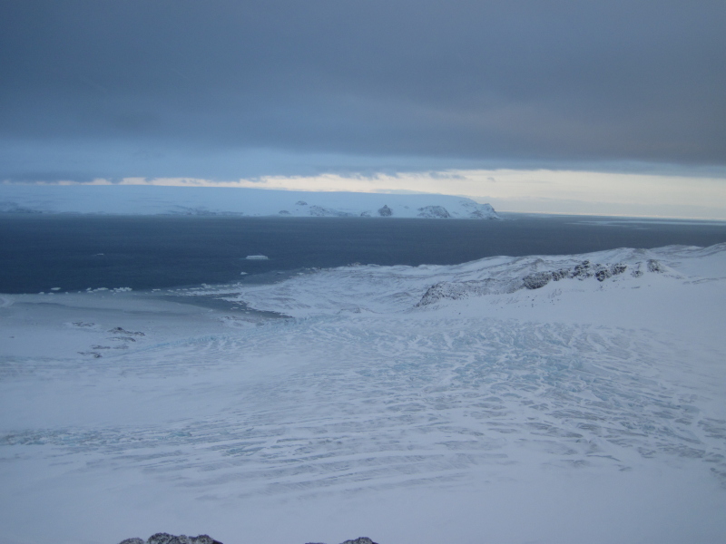 | 2012/09/25 - With Polar Pioneer on its way, some of the people here are mostly packed. We're just waiting for the confirmation of our return flights to start planning trips through South America. It seems that today we'll have to dig to remove snow from doors and windows to our main building. Sunny days mix with gloomy ones lately, and unexpectedly, last sunday was sunny. I've hiked to the Italian Valley again to have a look at the sunbathed glaciers and rest a bit from the usual daily noise at Arctowski. It was a perfectly windless day, so the only things one could hear was snow and ice under my feet and rare shouts of the antarctic terns, which have returned here in large numbers. It was really warm in the sun, despite -10°C on the thermometer. The way back through Ezcurra was even nicer - all the melting that's been going on for a while now formed a wide, flat and solid path at the shore. Some photos below. | ||||||||||||||||||||||||
