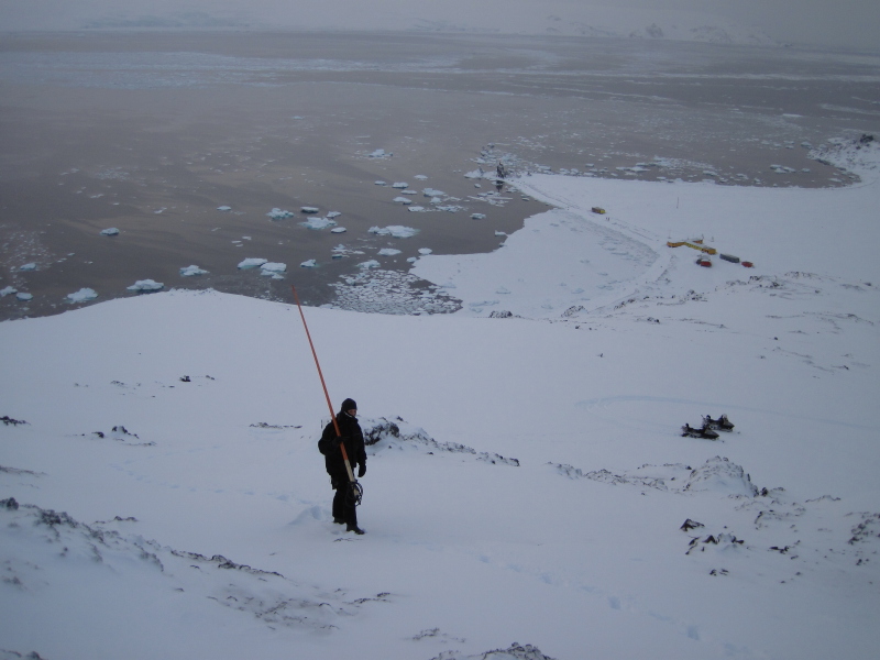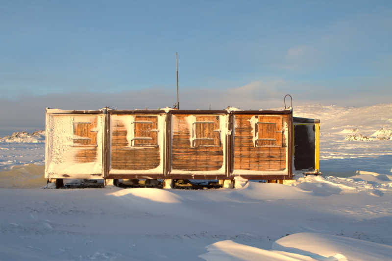 10 minutes today to get the doors to the meteorological building to open. After that Chris and I took ski-doos and went up on Point Thomas to install the rebuilt and reprogrammed VHF radio there. Sadly, it seems we will also have to replace one of the antennas there. |