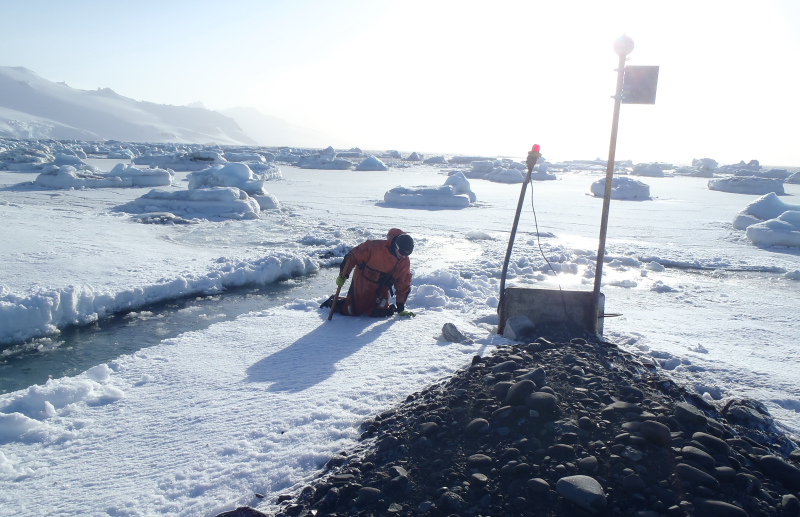one of the scientific activities we're doing here. Every +/- 10 days we have to walk along the beach from Jedynka Point (our fuel tank) up to